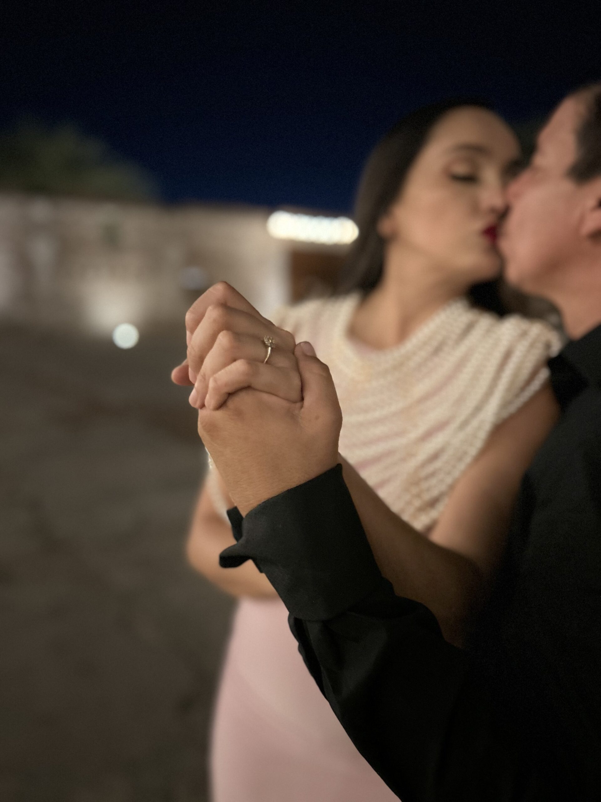 El primer brindis de la pareja a la media noche.
